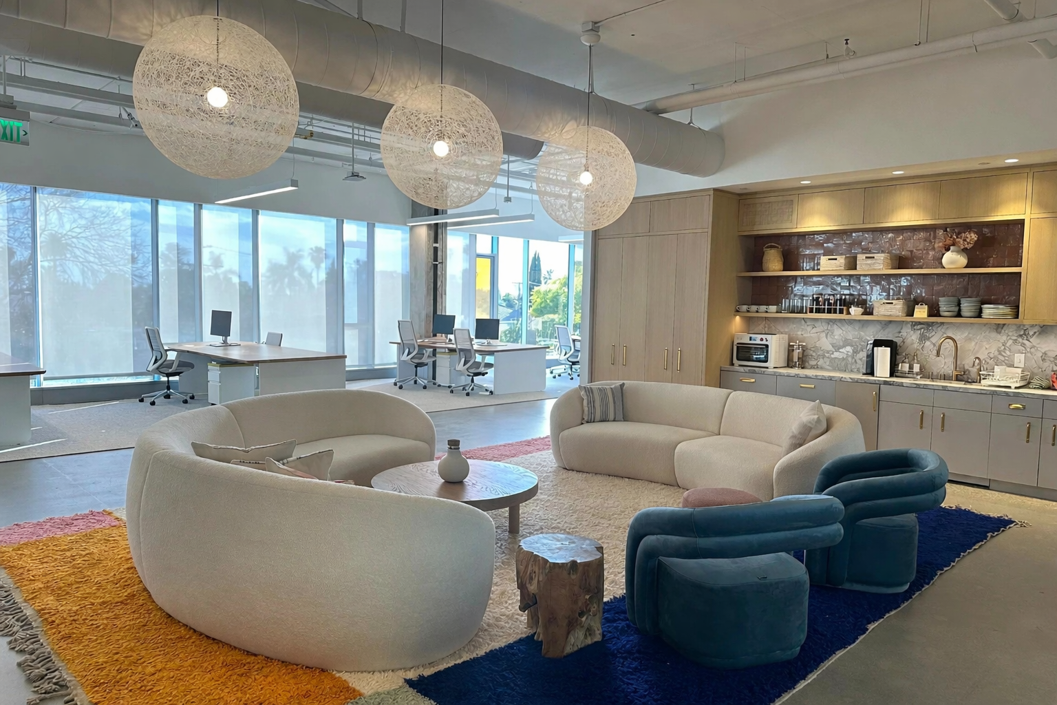 Designed for Little Sleepies, a family apparel brand, this 10,000-square-foot office renovation in Hollywood, California transformed an empty commercial space into a warm, functional workplace for both staff and visitors. The project was planned as a workplace interior that supports daily operations while creating a more inviting and usable office environment.